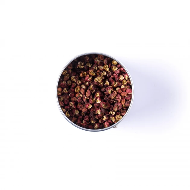Une des baies les plus connus dans les cuisines du monde entier, la baie de Szechuan rouge se distingue à la fois par son visuel, son nez, et son goût. La coque allant du rouge au brun s’ouvre pour montrer un intérieur couleur pistache. Cet aspect gourmand est complété par des effluves à la dominante d’agrumes et de fruits et aux notes de bois fumé et de thés.