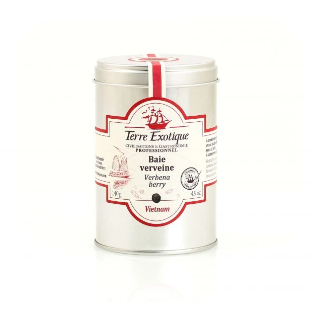 Venant du Vietnam, ces petites baies noires sont traditionnellement utilisées à des fins médicales mais leurs saveurs en font un assaisonnement de premier choix. Particulièrement goûtues avec des poissons et des crustacés, en marinade et en sauce, les baies verveine du Vietnam sont persistantes et suaves en bouche. En effet, si l’attaque et très citronnée, les saveurs explosent ensuite en divers arômes d’infusions, de fumées et de réglisse.